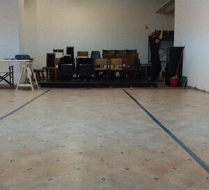 Almenodue è una sala di 120 mq rigenerata da Illoco Teatro con l'aiuto delle centinaia di artisti che in questi anni hanno provato in quello spazio offrendo tempo o donazioni.