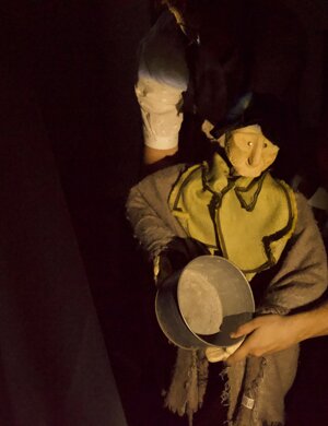 La messinscena prevede l’utilizzo di marionette e ombre che accompagnano la narrazione.